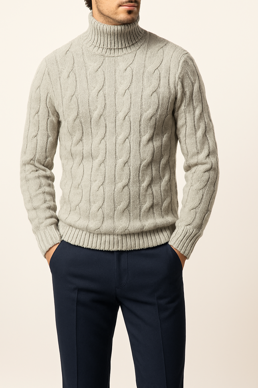 Il suo design raffinato si distingue per il motivo a trecce intrecciate, che conferisce profondità e carattere alla maglia, rendendola un pezzo distintivo all'interno del guardaroba. Il collo alto, avvolgente e confortevole, offre protezione contro il freddo, mantenendo un look elegante e ben curatoLa "McQueen" è perfetta per essere indossata in molteplici occasioni, grazie alla sua capacità di adattarsi con naturalezza a diversi stili. Può essere abbinata a pantaloni eleganti per un look formale, oppure a jeans per un approccio più casual ma comunque raffinato. Il grigio mélange un classico senza tempo, aggiunge ulteriore versatilità, permettendo di giocare con accessori e capi in contrastoOgni dettaglio della maglia è stato pensato per garantire la massima vestibilità e un look impeccabile in ogni momento. Che tu sia a un evento importante o in un contesto più rilassato, il dolcevita "McQueen" sarà sempre una scelta di classe e distinzione.