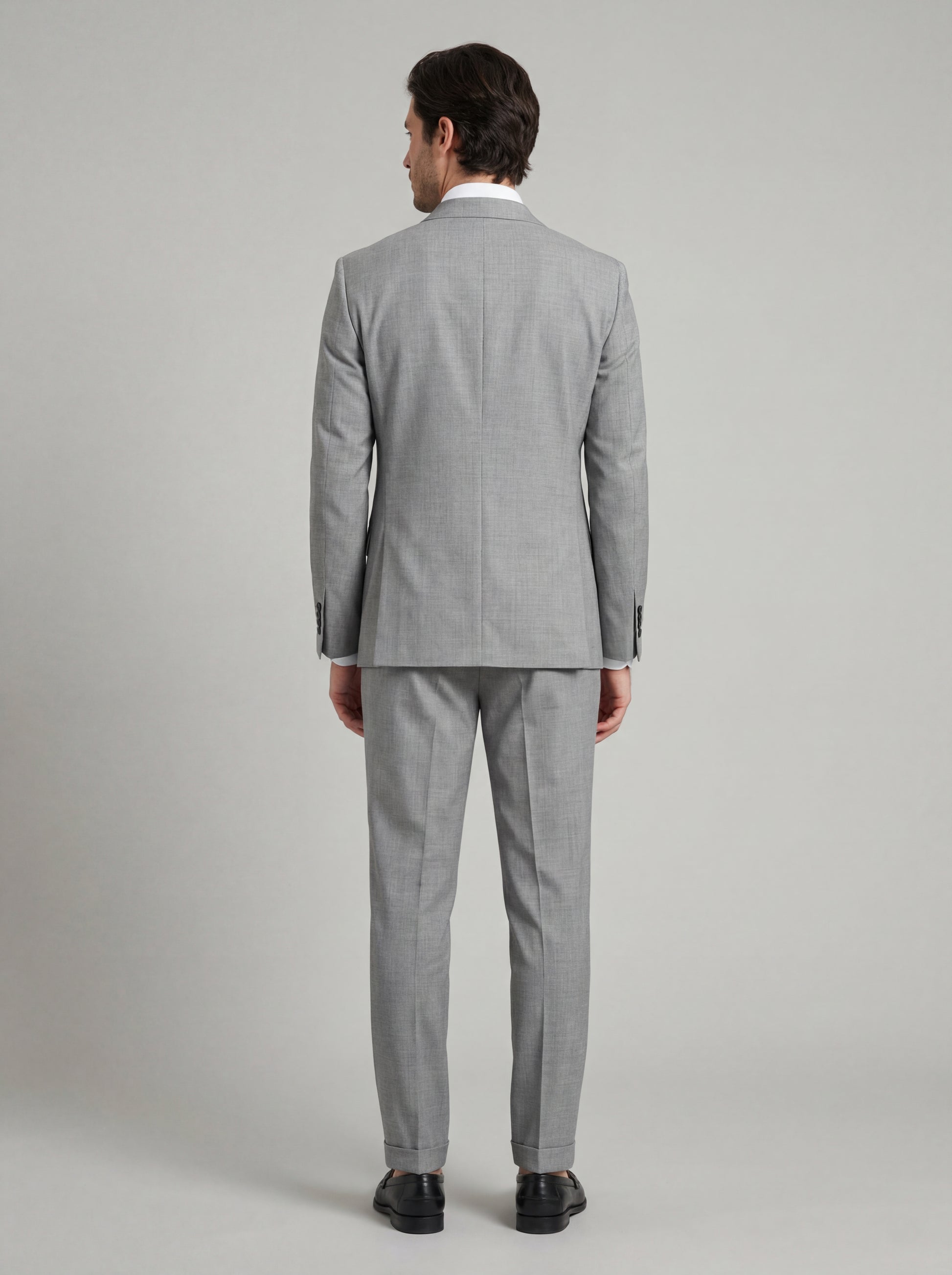 The understated yet luminous gray fabric enhances the silhouette with discretion and refinement. Every detail—from the tone-on-tone buttons to the exposed stitching—expresses the care and precision of Made in Italy, interpreting tailoring with a contemporary twist.