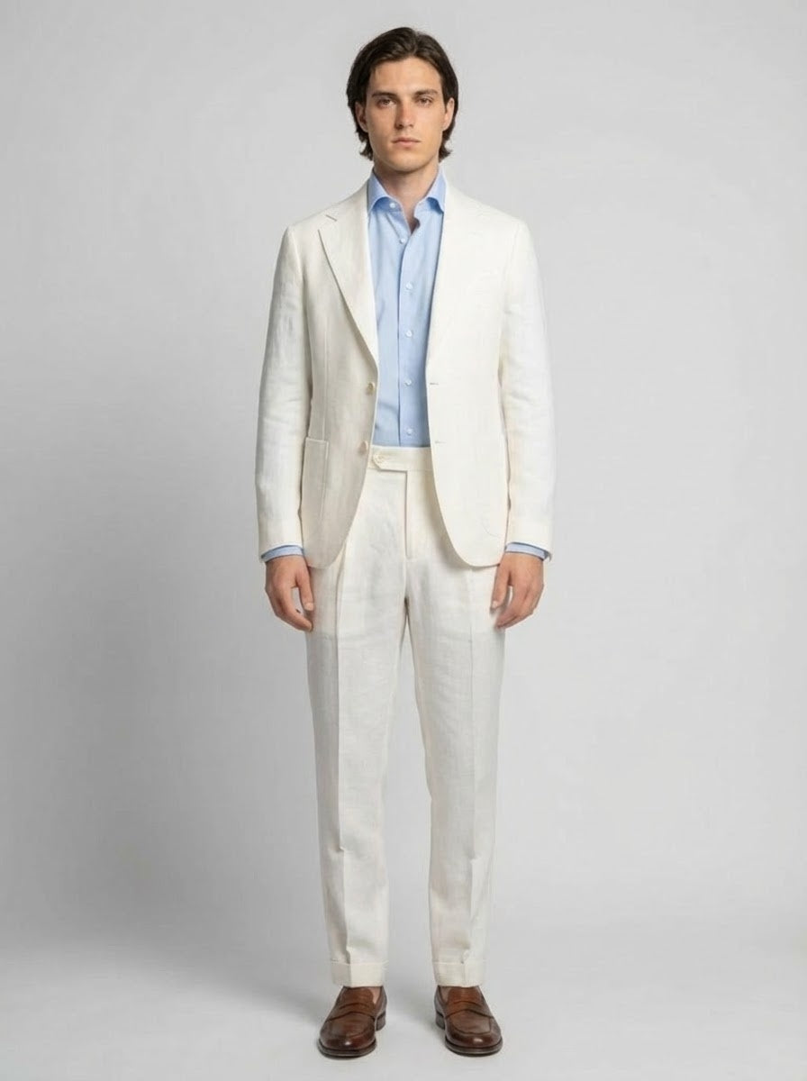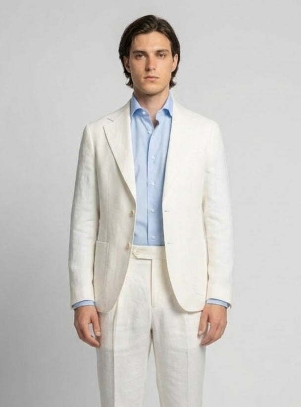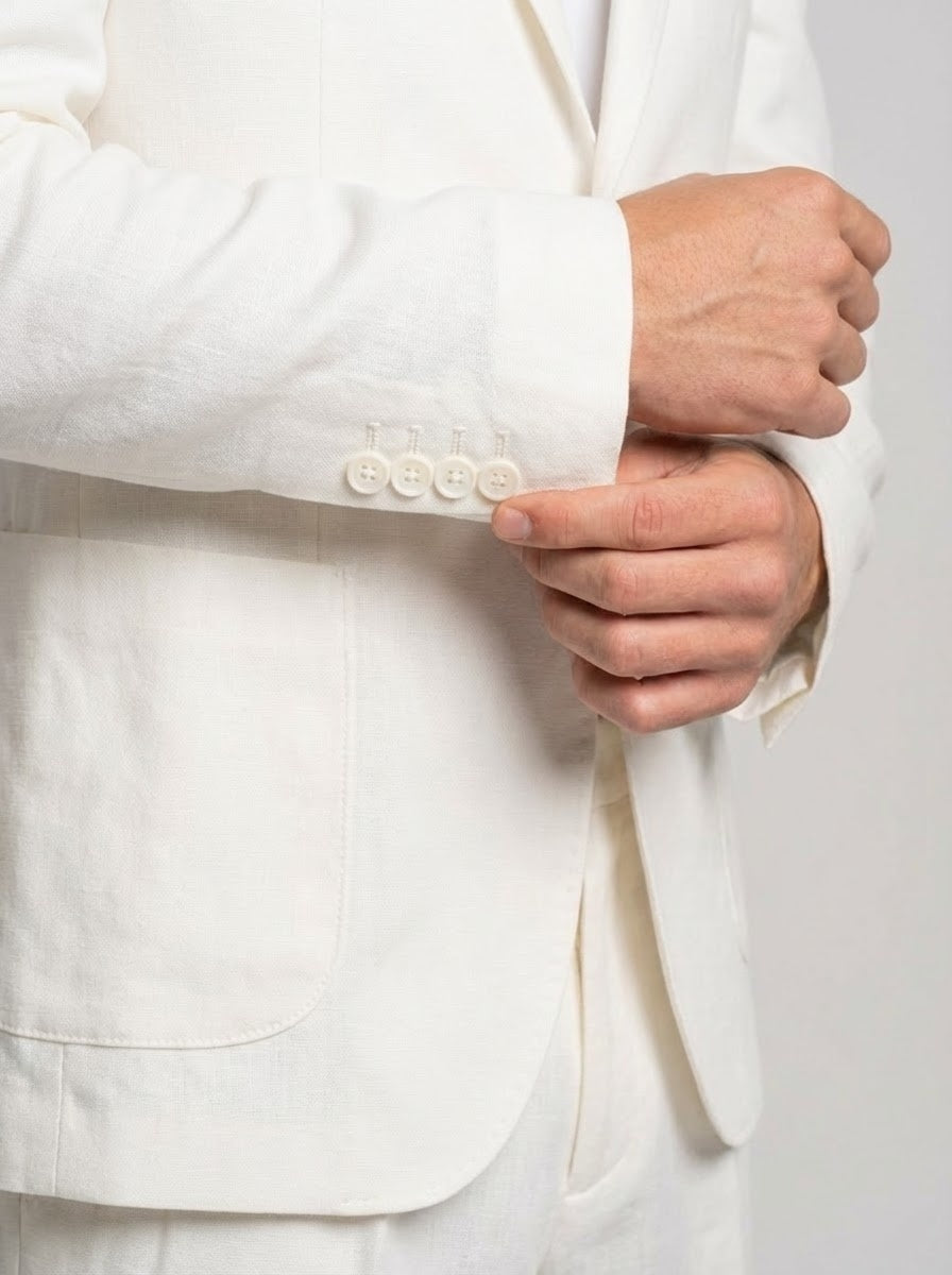 Ogni dettaglio è curato con precisione sartoriale: dalle tasche a toppa ai bottoni in corno, fino alla fodera interna leggera, pensata per garantire freschezza e comfort durante tutto il giorno.