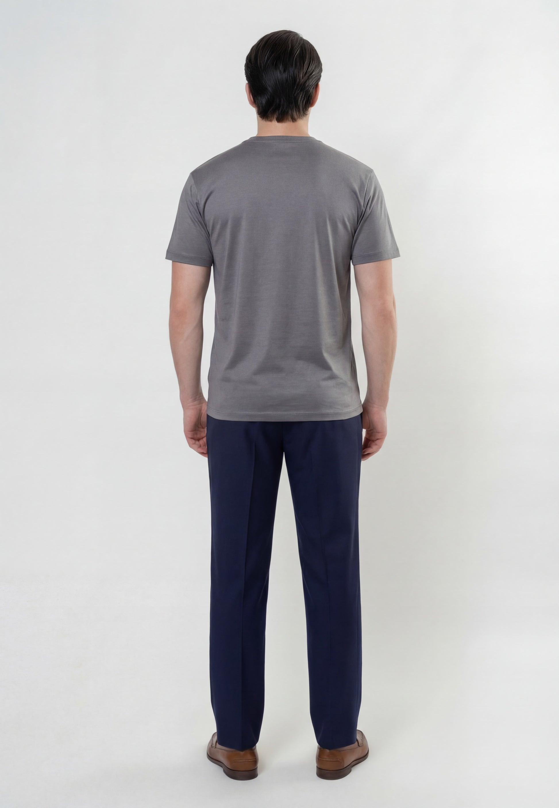 Realizzata in un pregiato mix di 50% cotone e 50% modal, questa T-shirt si distingue per l’effetto seta, morbido e luminoso, che avvolge la figura con leggerezza e comfort. La colorazione grigia, neutra e sofisticata, la rende estremamente versatile e adatta a ogni occasione, dal look casual quotidiano all’outfit più ricercato sotto giacca.