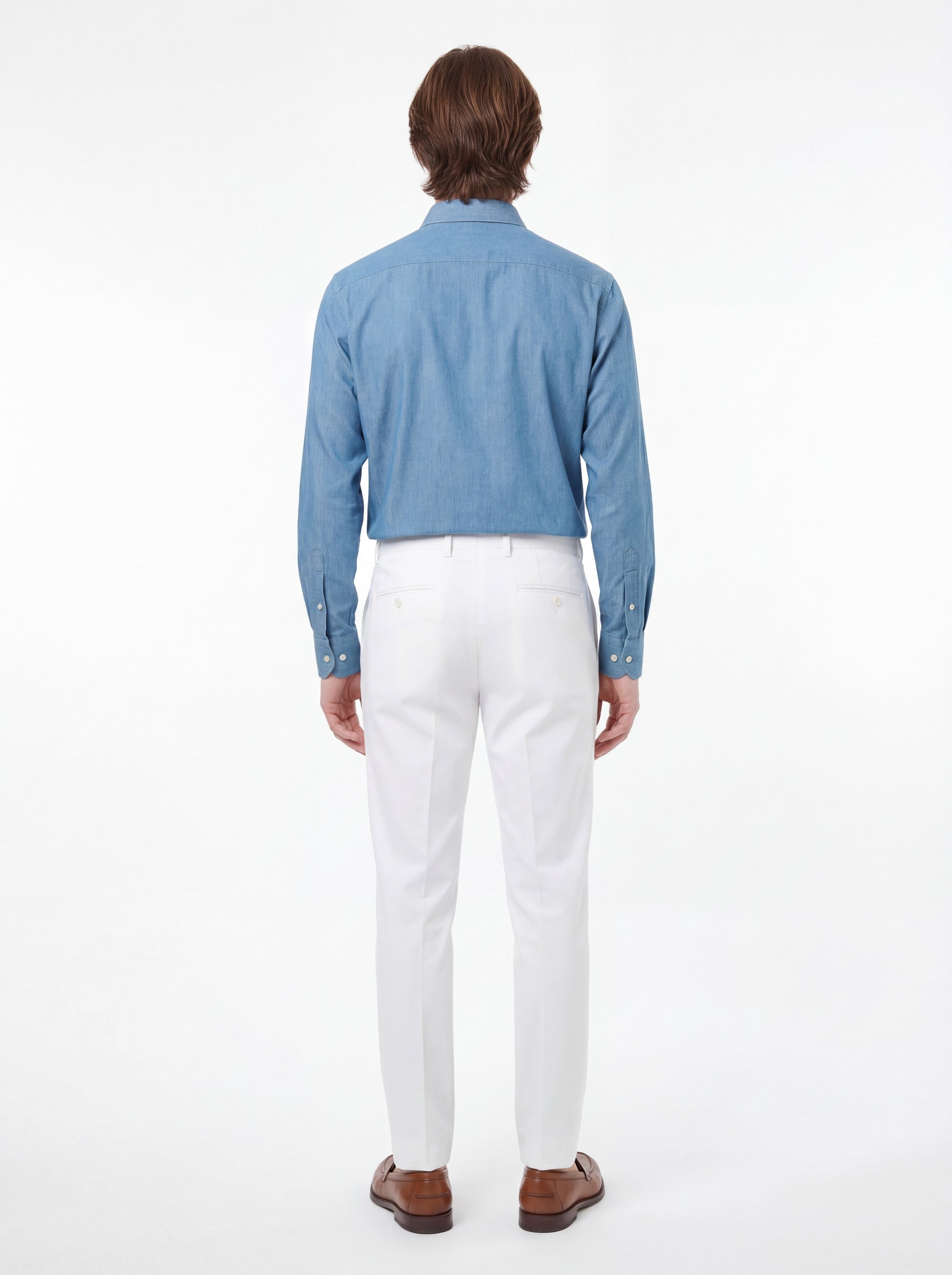 Realizzata in denim di alta qualità, presenta una texture compatta ma morbida al tatto, che garantisce comfort e una vestibilità naturale durante tutta la giornata. Il blu medio, intenso e luminoso, dona profondità al colore e raffinatezza all’insieme.