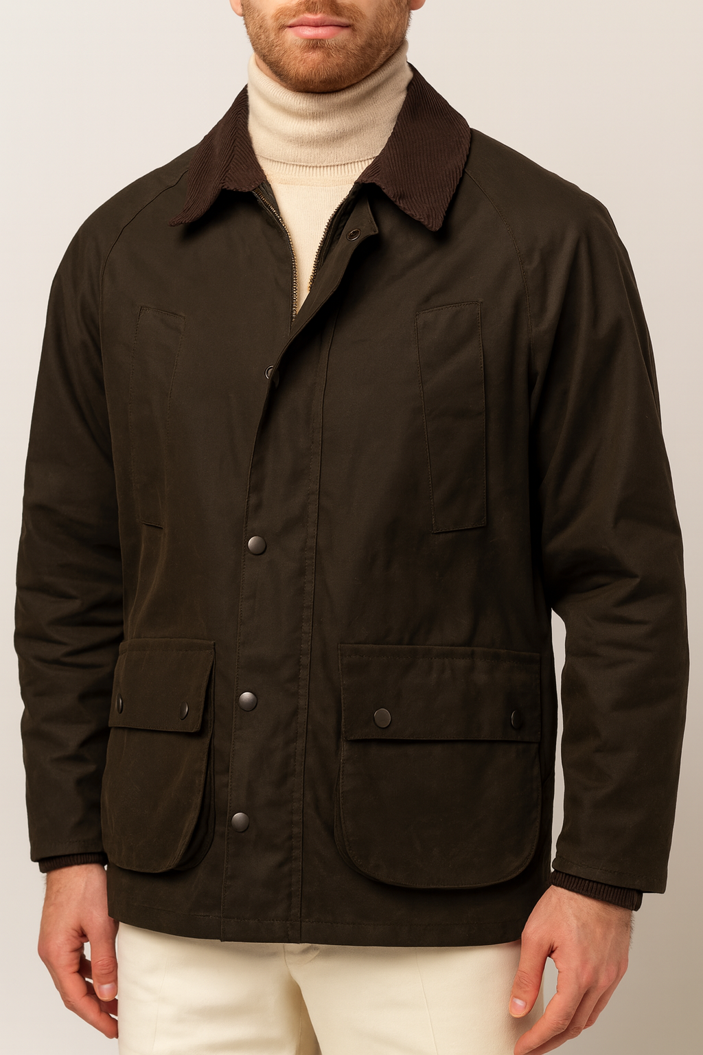 Il design classico, con colletto in velluto a coste e chiusura con bottoni a pressione, richiama l’estetica delle giacche da caccia inglesi, mentre la linea leggermente strutturata valorizza la figura mantenendo un comfort naturale. Le ampie tasche frontali con patta aggiungono praticità, rendendolo perfetto sia per l’uso urbano che per i contesti outdoor.