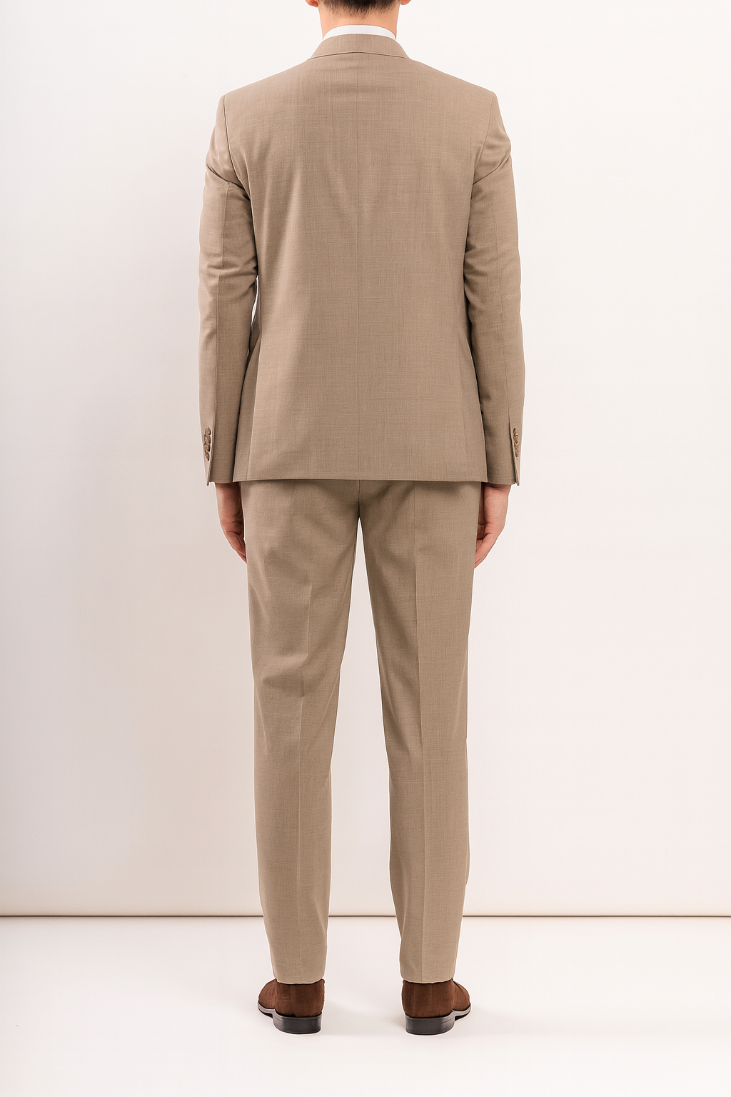 La giacca, impeccabile nel taglio e nei dettagli, presenta un rever classico e una chiusura a due bottoni, valorizzando la silhouette con sobrietà ed eleganza. Le tasche con pattina, il taschino sul petto e la raffinata impuntura sartoriale completano il look con gusto senza tempo. Il fondo manica con bottoni tono su tono sottolinea ulteriormente la cura per i dettagli.