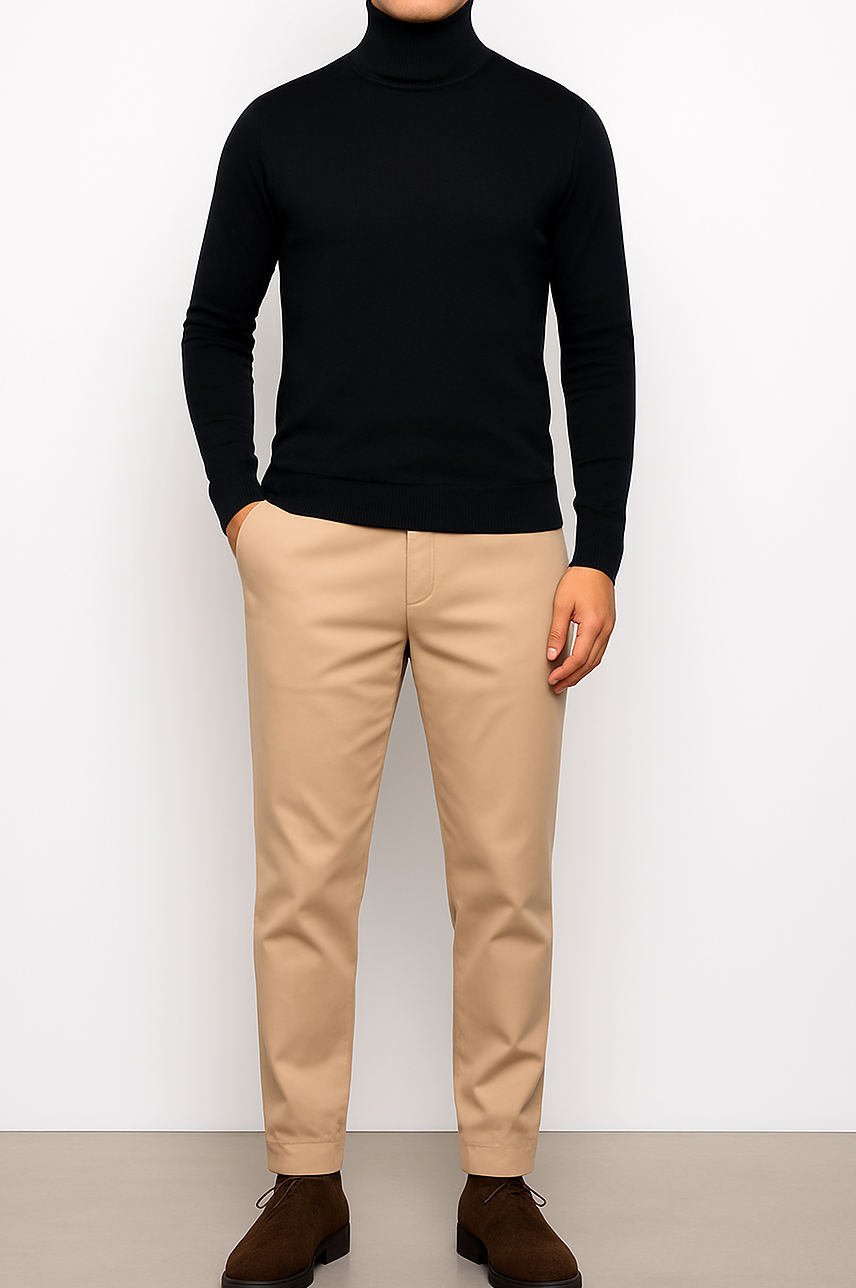 Il dolcevita James in colorazione beige rappresenta la perfetta sintesi di raffinatezza e comfort. Realizzato con pregiati filati, questo capo offre una vestibilità impeccabile e un tocco incredibilmente morbido sulla pelle. La trama compatta e il design essenziale lo rendono un must-have per l'uomo che ama uno stile sobrio e sofisticato.