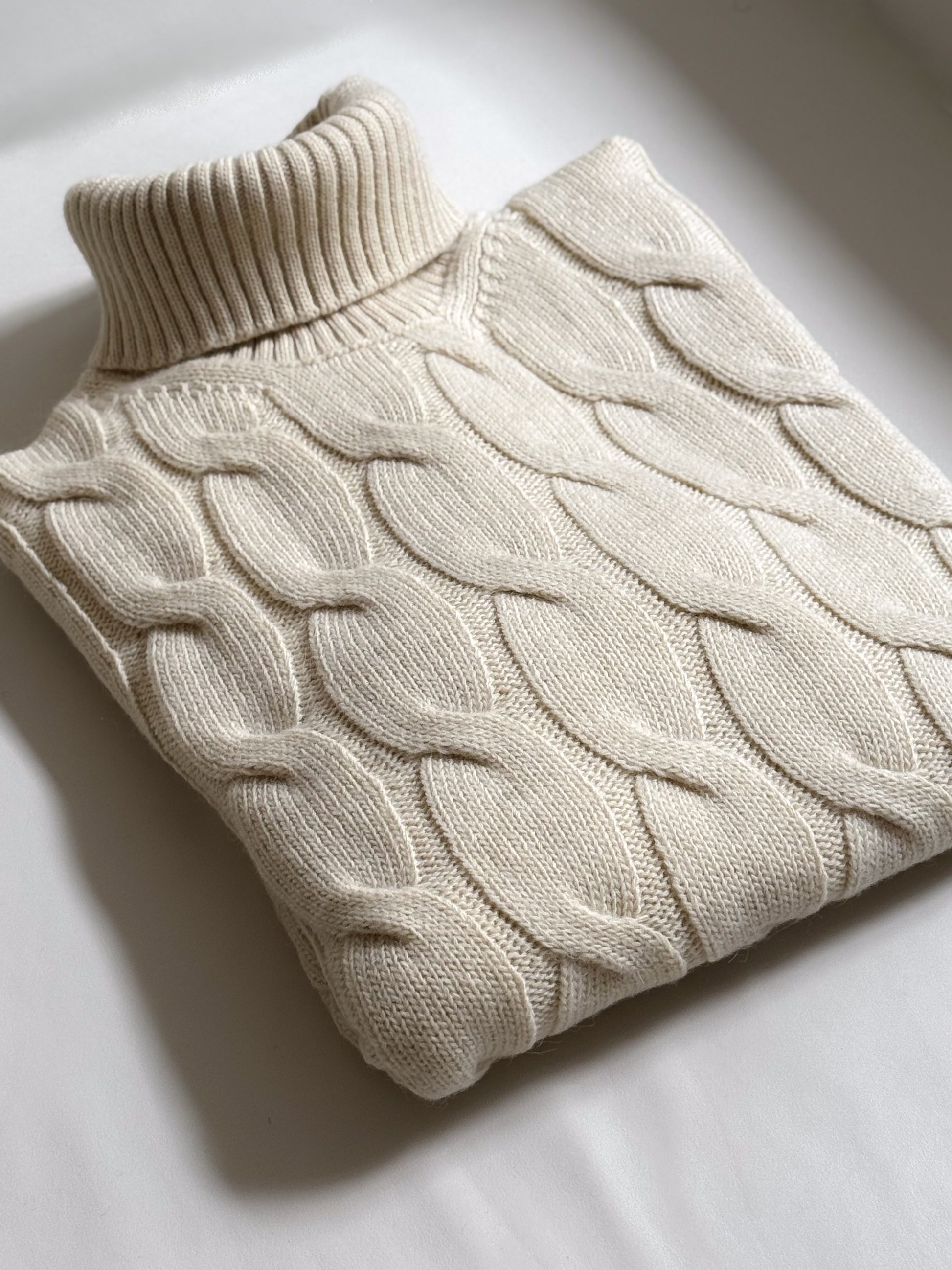 Il suo design raffinato si distingue per il motivo a trecce intrecciate, che conferisce profondità e carattere alla maglia, rendendola un pezzo distintivo all'interno del guardaroba. Il collo alto, avvolgente e confortevole, offre protezione contro il freddo, mantenendo un look elegante e ben curatoLa "McQueen" è perfetta per essere indossata in molteplici occasioni, grazie alla sua capacità di adattarsi con naturalezza a diversi stili. Può essere abbinata a pantaloni eleganti per un look formale, oppure a jeans per un approccio più casual ma comunque raffinato.