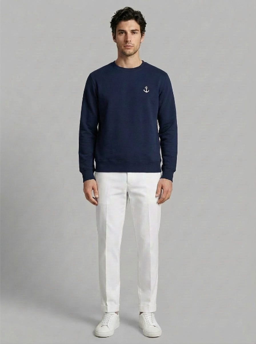 L’elemento distintivo è l’ancora ricamata sul petto, simbolo di eleganza senza tempo e di un’estetica ispirata al mondo nautico. Il ricamo, curato nei minimi dettagli, dona un tocco esclusivo, esaltando la tradizione artigianale del Made in Italy.