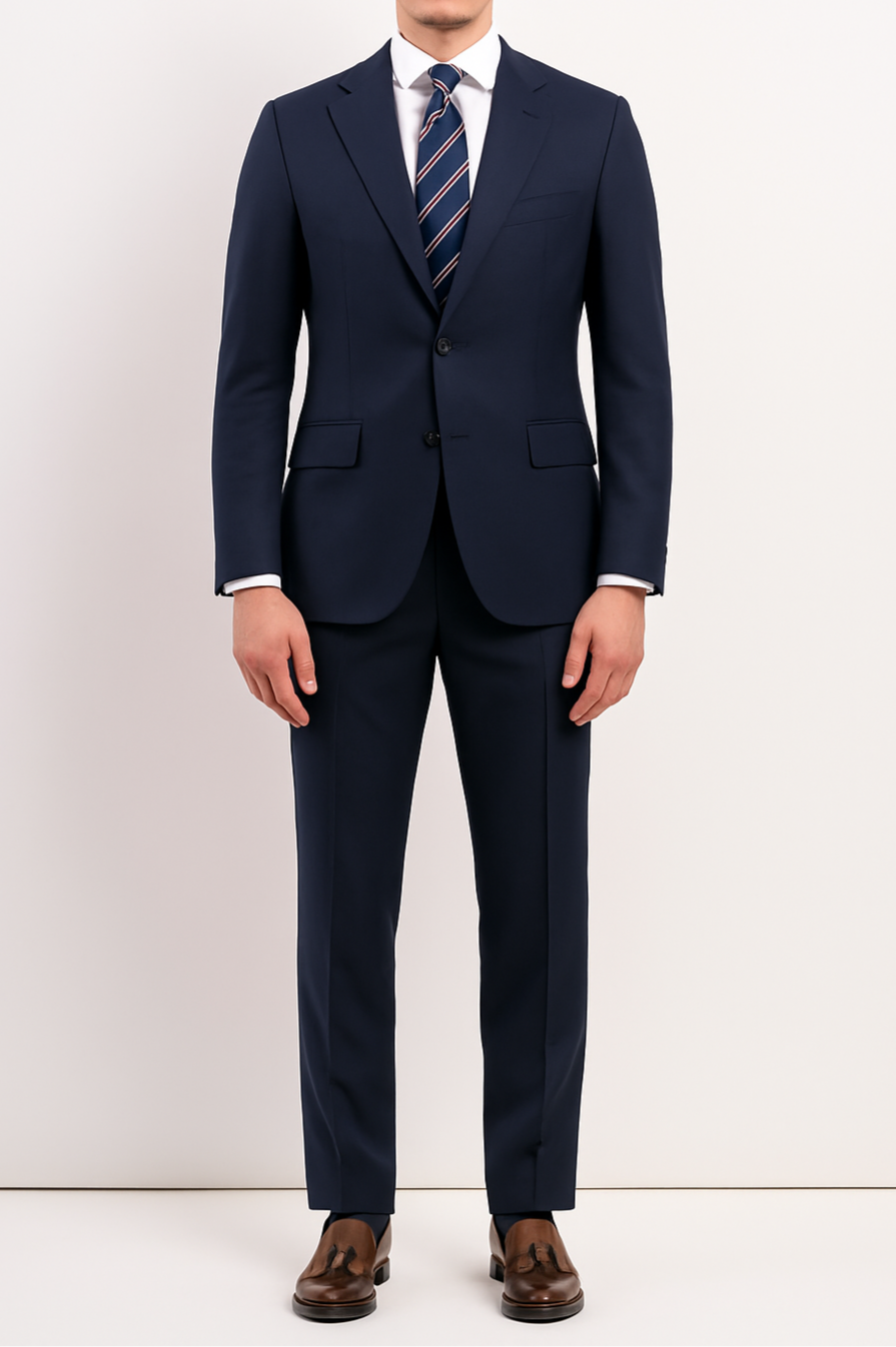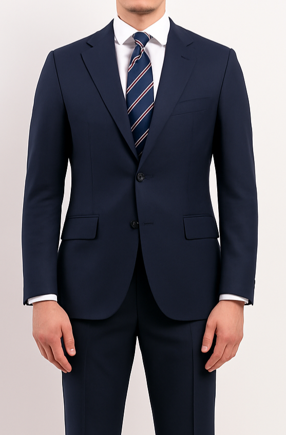 Caratterizzata da un taglio impeccabile e da linee essenziali, la giacca presenta un rever classico e una chiusura a due bottoni che valorizzano la silhouette con naturalezza. Le tasche con pattina e il taschino sul petto confermano lo stile intramontabile del modello, mentre l’impuntura sartoriale a vista ne esalta l’artigianalità.